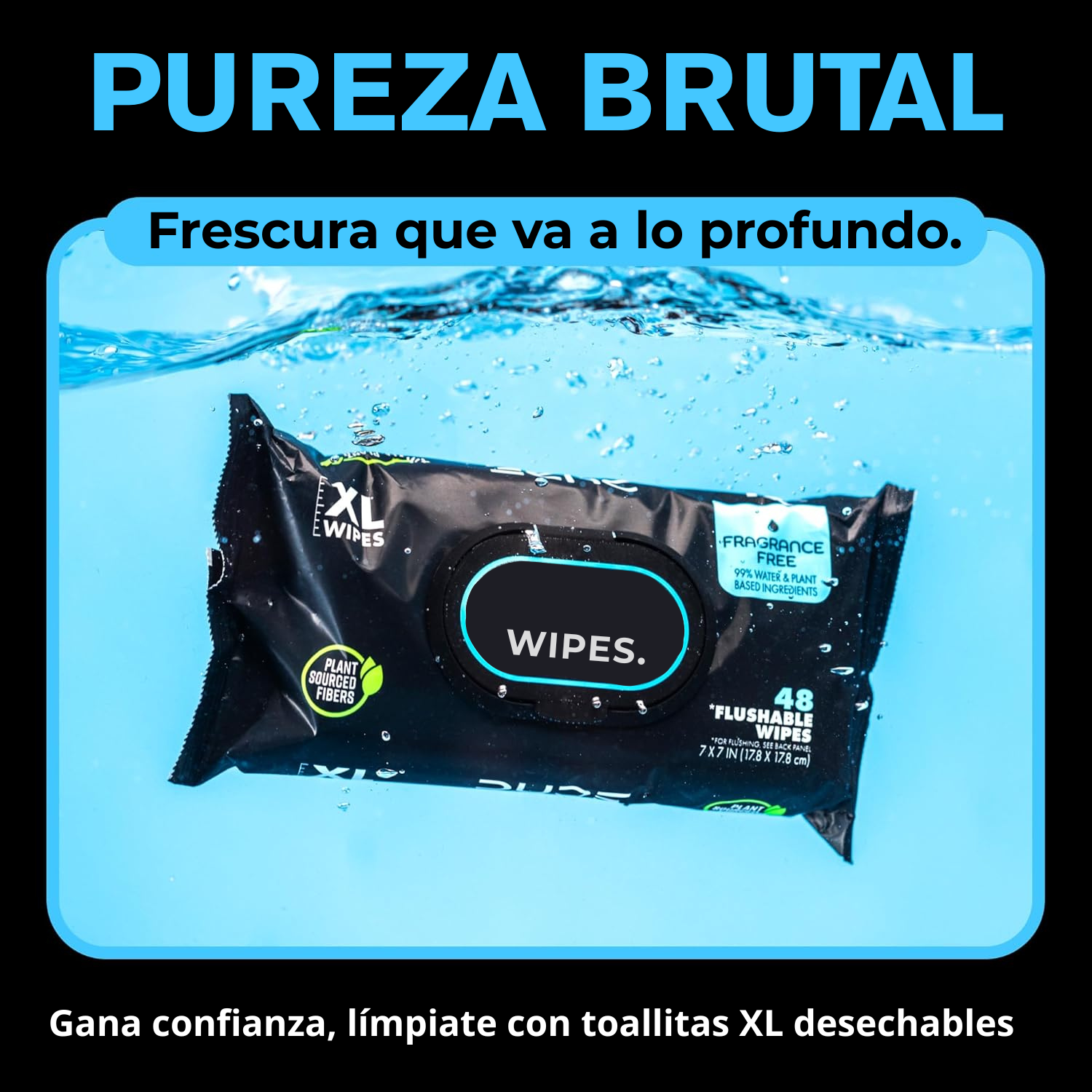 Cada pack contiene 48 toallitas húmedas de aproximadamente 17.8 cm x 17.8 cm, ofreciendo una limpieza cómoda y completa.